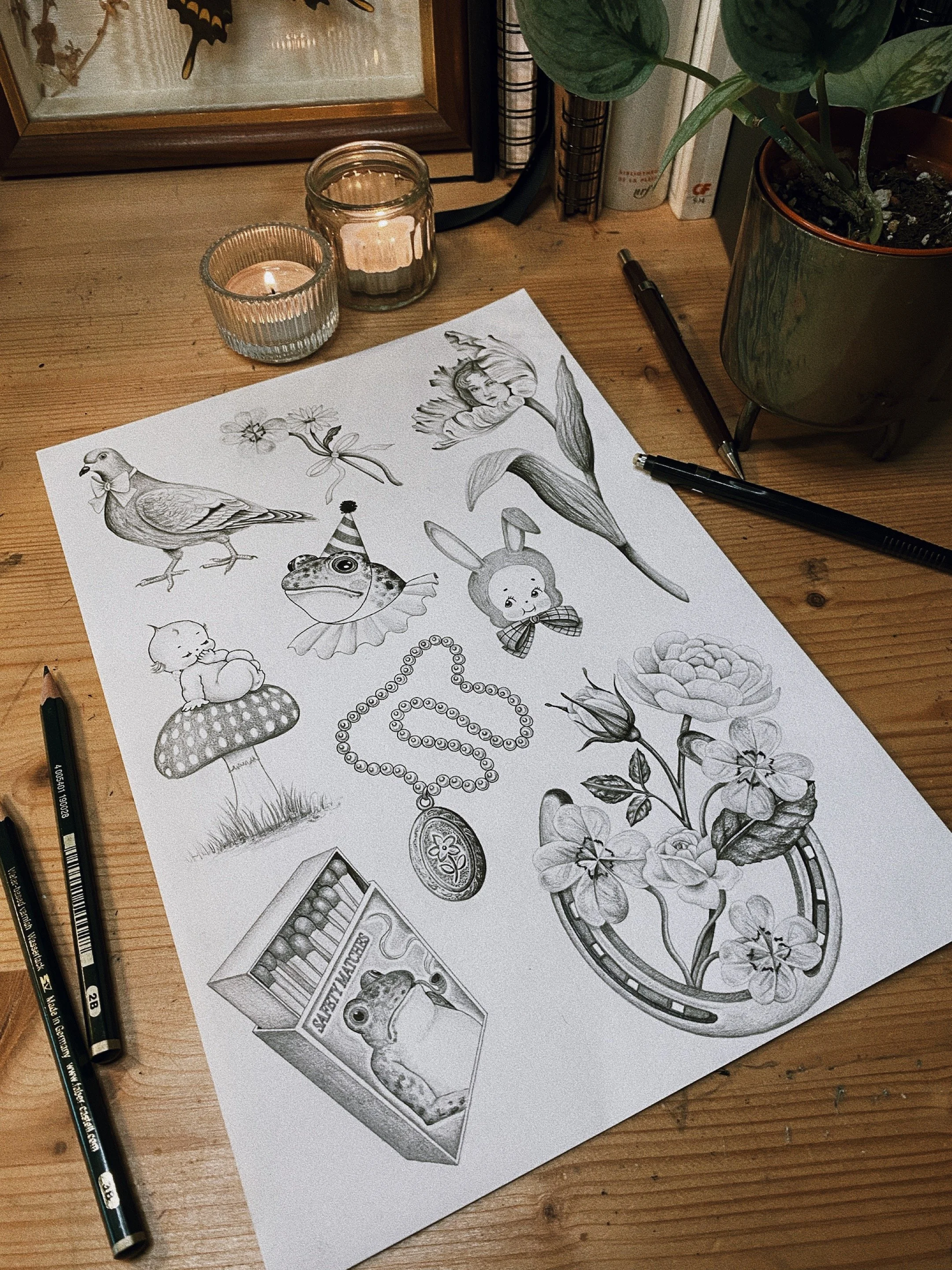 Here you can find some available flash, placement ideas for some designs as well as some reference photos I’d like to work from
