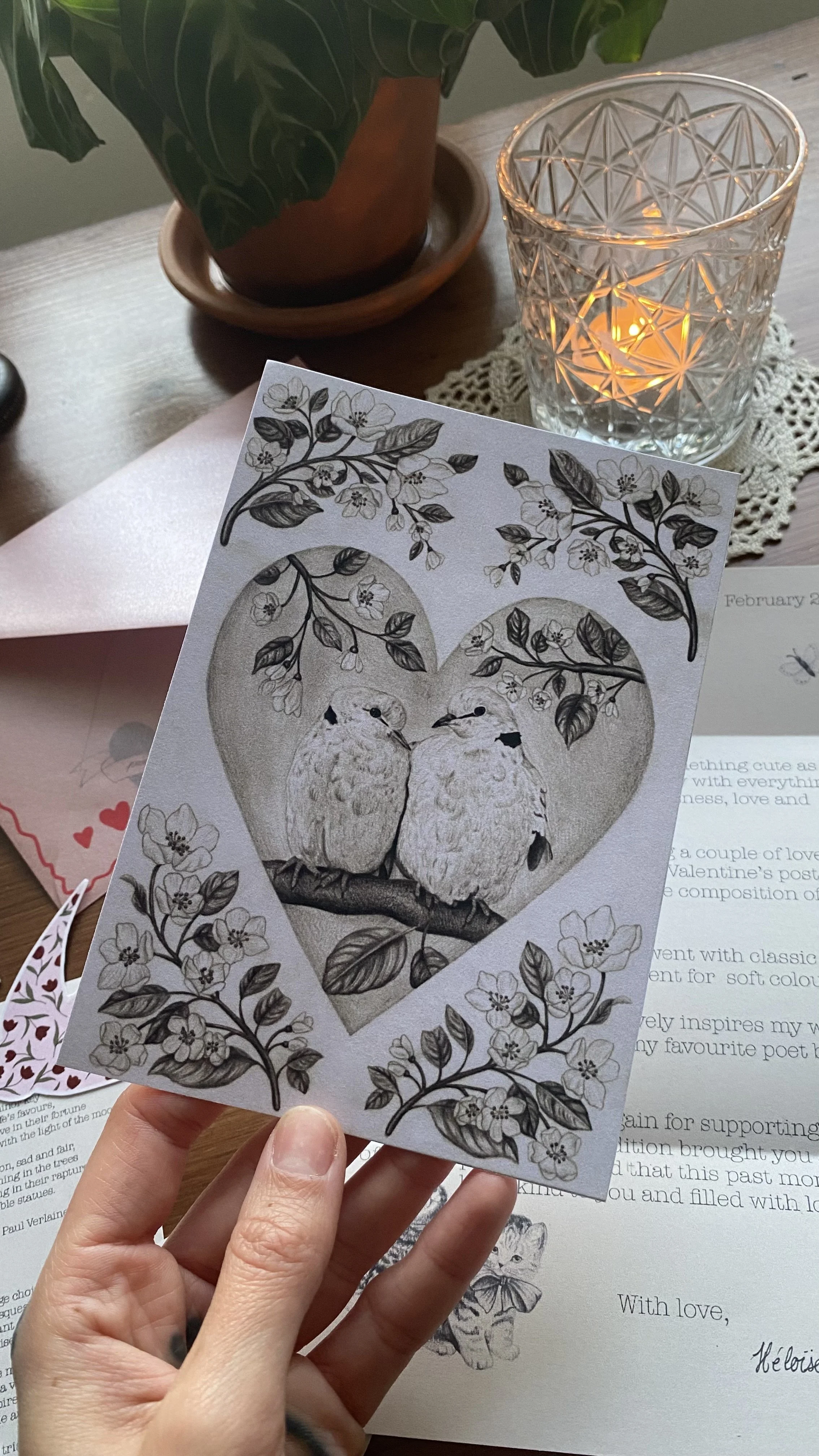 A 10x15cm print & letter and mini prints or other extras sent to you each month, something cute, vintage inspired that will hopefully bring you some joy each month.
